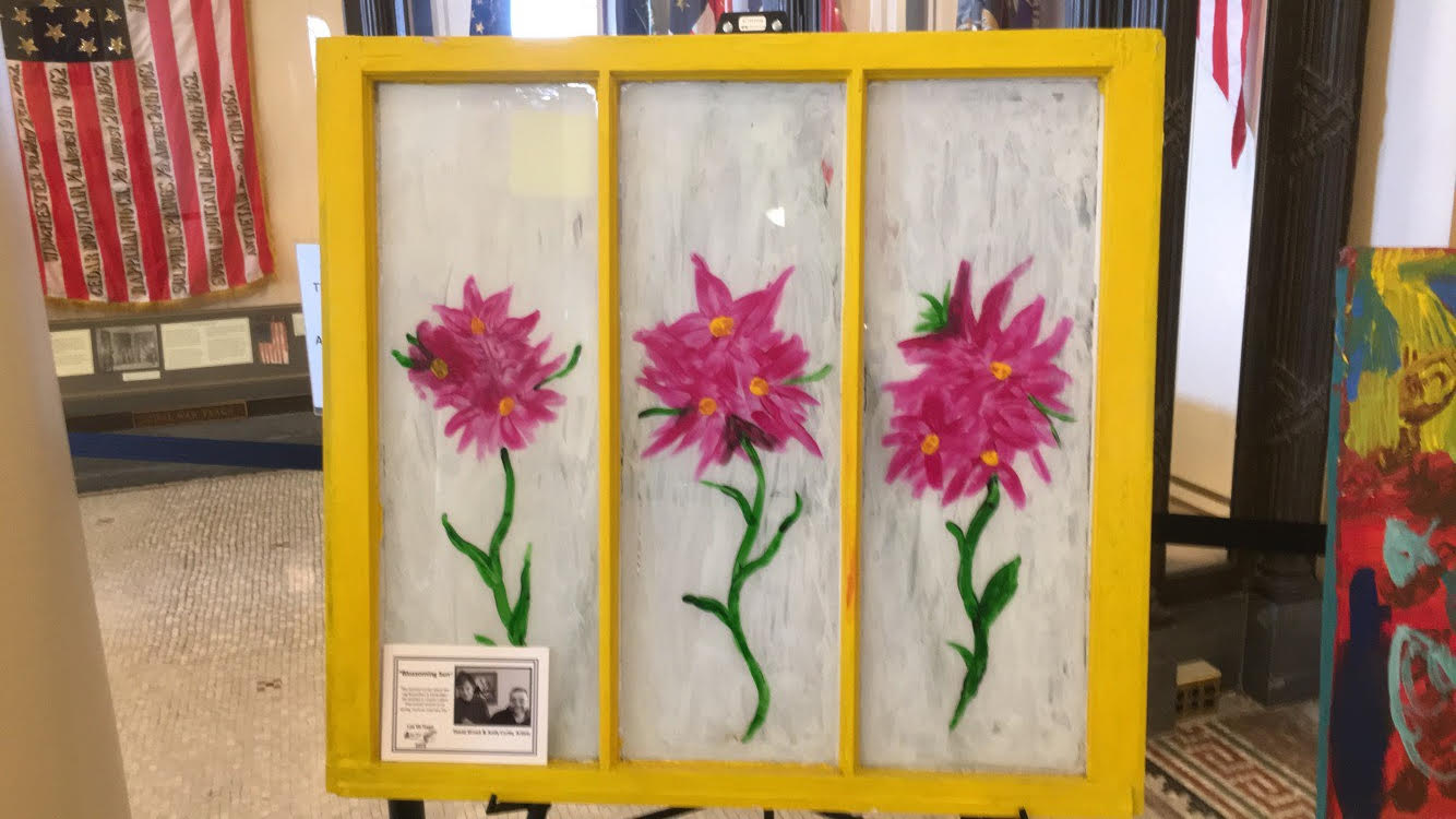 The artwork we really enjoyed as a group was a handful of old glass window panels with some beautiful floral depictions in the middle of each pane. The one depicted below was the group’s favorite. This floral recycled form of art is something Citizens of Maine was inspired to try and we will be adding it to our calendar!